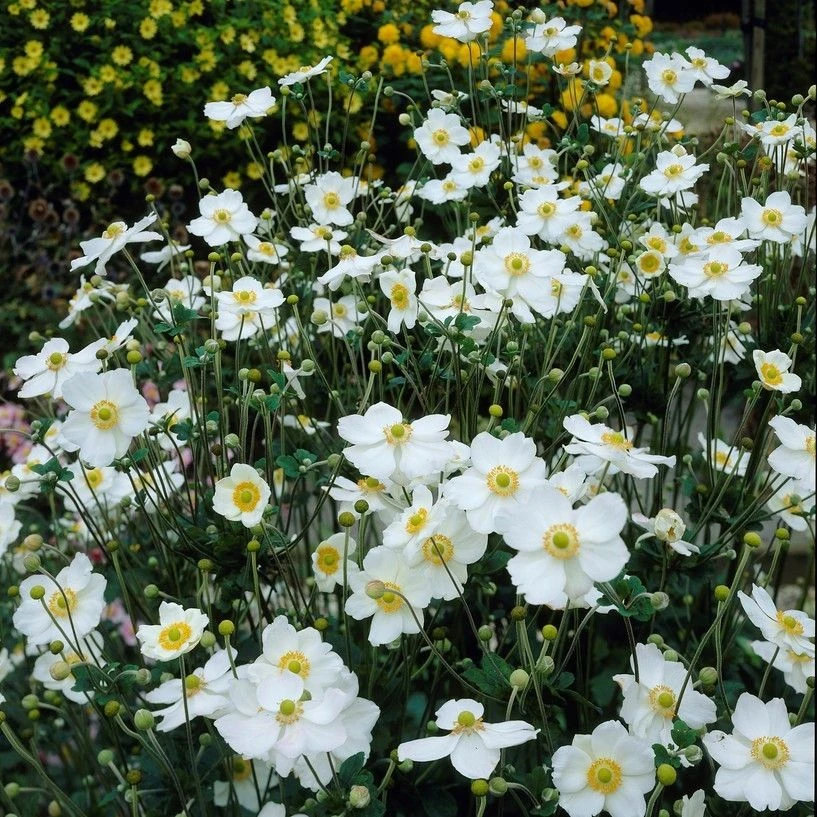 Japanese Anemones are easy to grow, trouble free plants. Forming a nice clump that increases and improves year on year, the masses of white flowers are shown off beautifully above the fresh green foliage. After the flowers fade, fluffy seed heads are produced, standing a top strong stems to give interest to the garden from late autumn and into the winter.