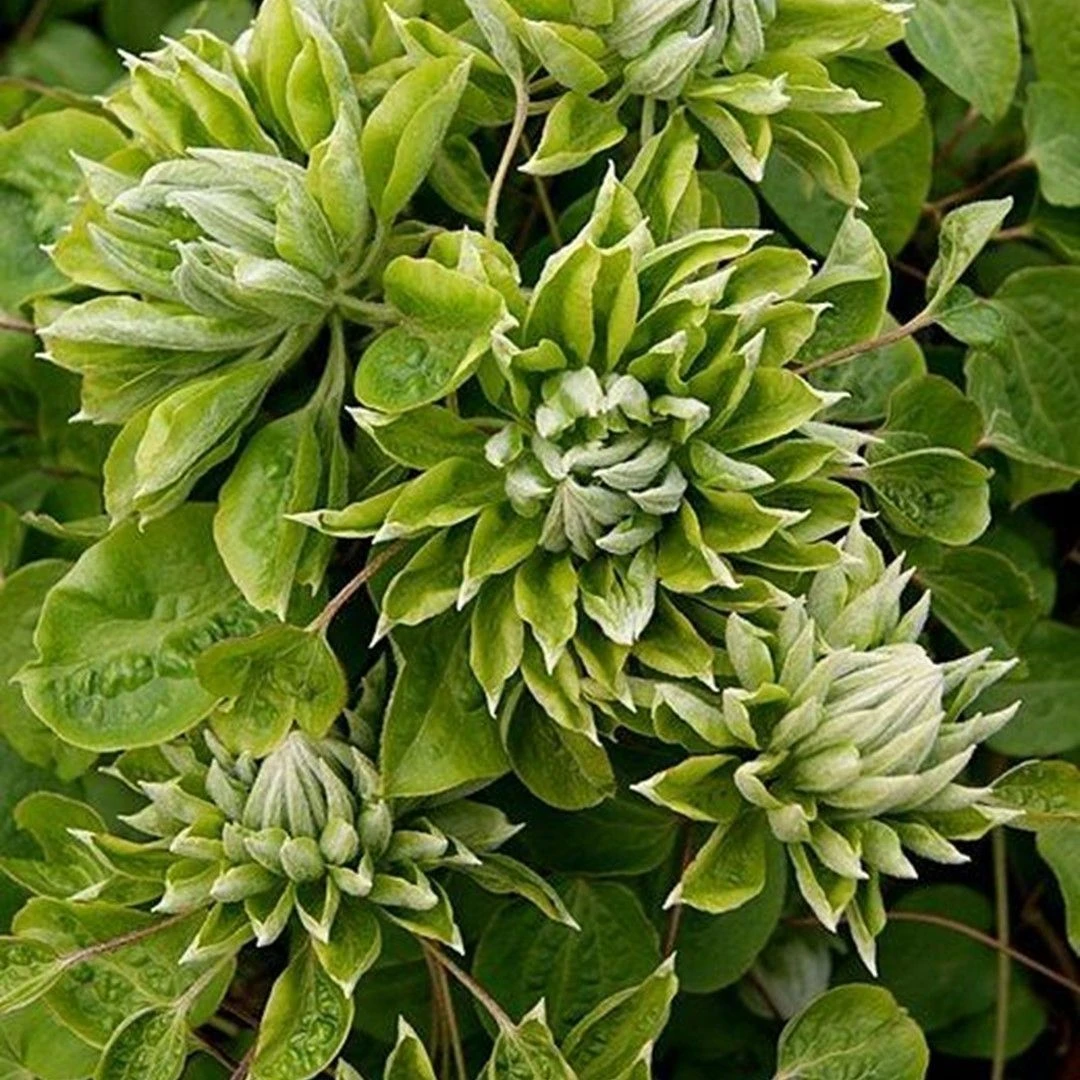 The Clematis ‘Green Passion’ is a very different new variety – the first ever ‘double clematis’ with green-cream flowers twice a year!