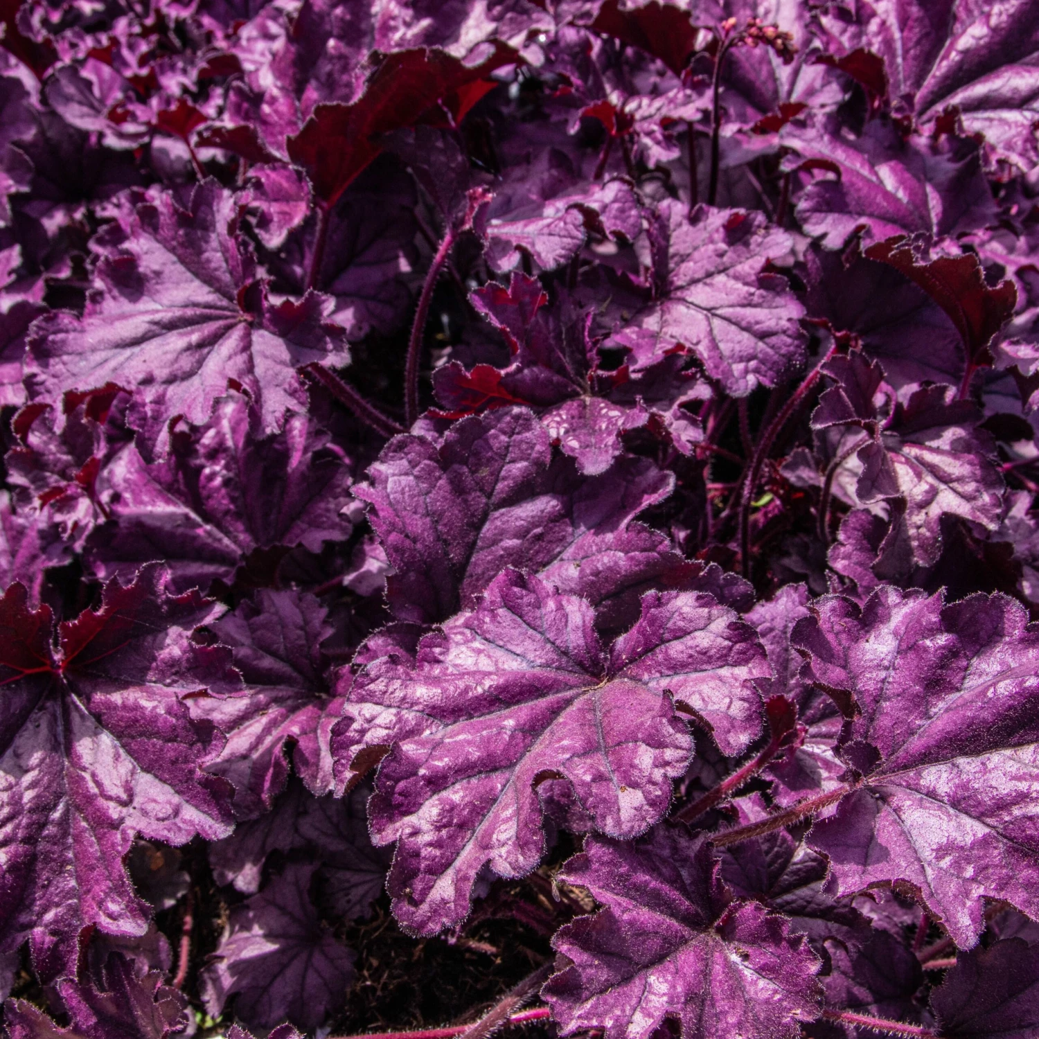 Forever Purple Heucheras are the new standard in purple foliage perennials – as the name suggests, they are forever purple, all year round, with knockout ultra-purple glossy foliage with a fluted edge. The plant grows with vigour and keeps the amazing purple colour all year round, even through winter. In summer, as an added bonus, short spikes of purple-pink flowers appear.