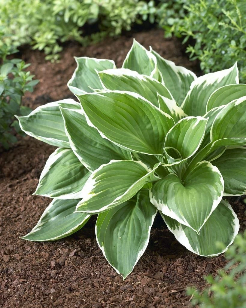 Francee’ is one of the best white-margined Hostas. It is a vigorous fortunei-type hosta with large distinctive blue-green leaves, each with a slightly jagged yellowish band round the edge. Although mainly grown for their foliage, in midsummer they produce impressive spikes of lavender bell shaped flowers held just above the foliage. Plants prefer light shade as the leaf margins may scorch in a sunny spot especially if the soil is not moist enough. Like all Hostas, they make effective ground cover and look best when grown in groups. ‘Francee’ teams well with other hostas, but also looks good with hardy ferns, astilbes and dicentra in light shade. Supplied in approx 3 litre containers.
