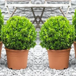 Pair Of Premium Quality Topiary Buxus BALLS With Stylish Contemporary Flared SLATE BLACK Planters